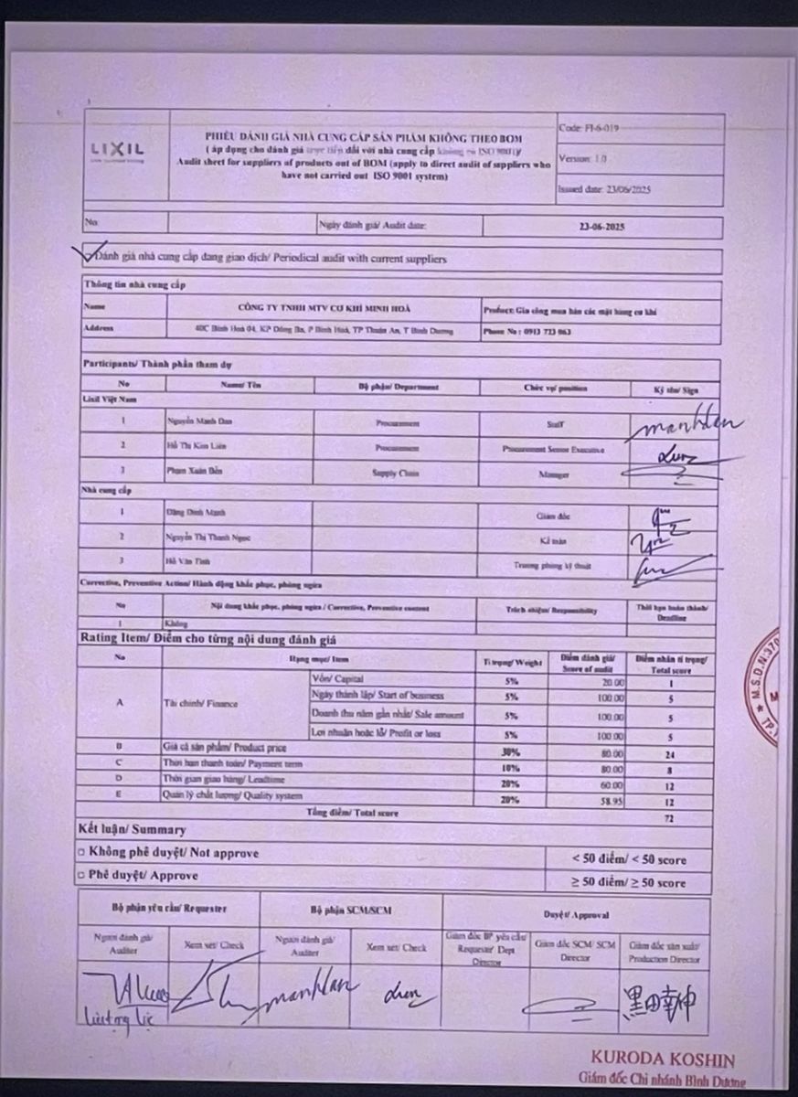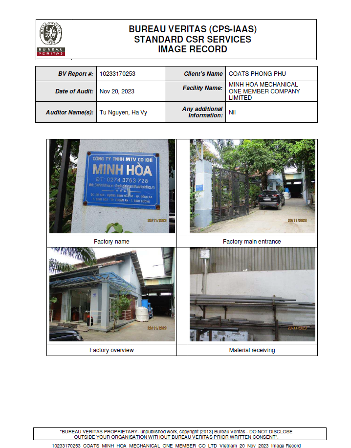 GIẤY CHỨNG NHẬN AUDIT : CTY COATS VÀ CTY LIXIL